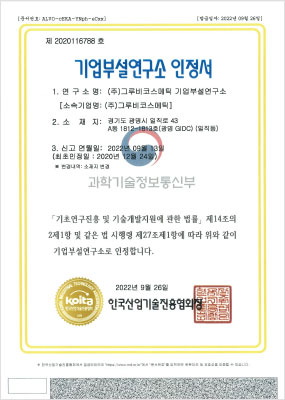 기업부설연구소 인정서