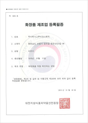 화장품 제조업 등록필증