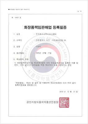 화장품 책임판매업 등록필증