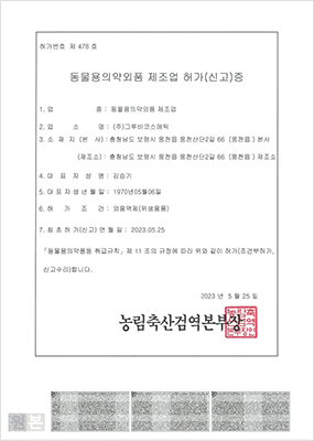 동물용의약외품 제조업 허가증